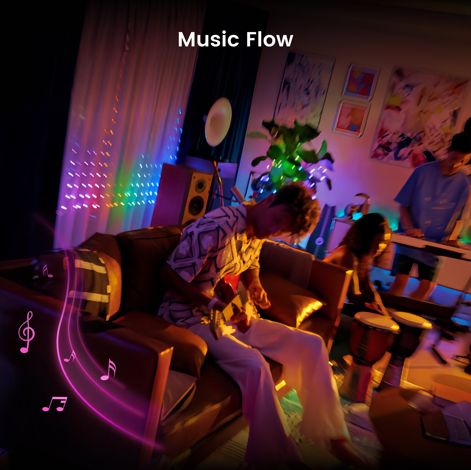Easily control your curtain lights through the Yeelight app via Bluetooth. Enjoy dynamic light shows with Music Flow, which syncs lighting effects with your music, bringing an interactive experience to parties or live streaming.
