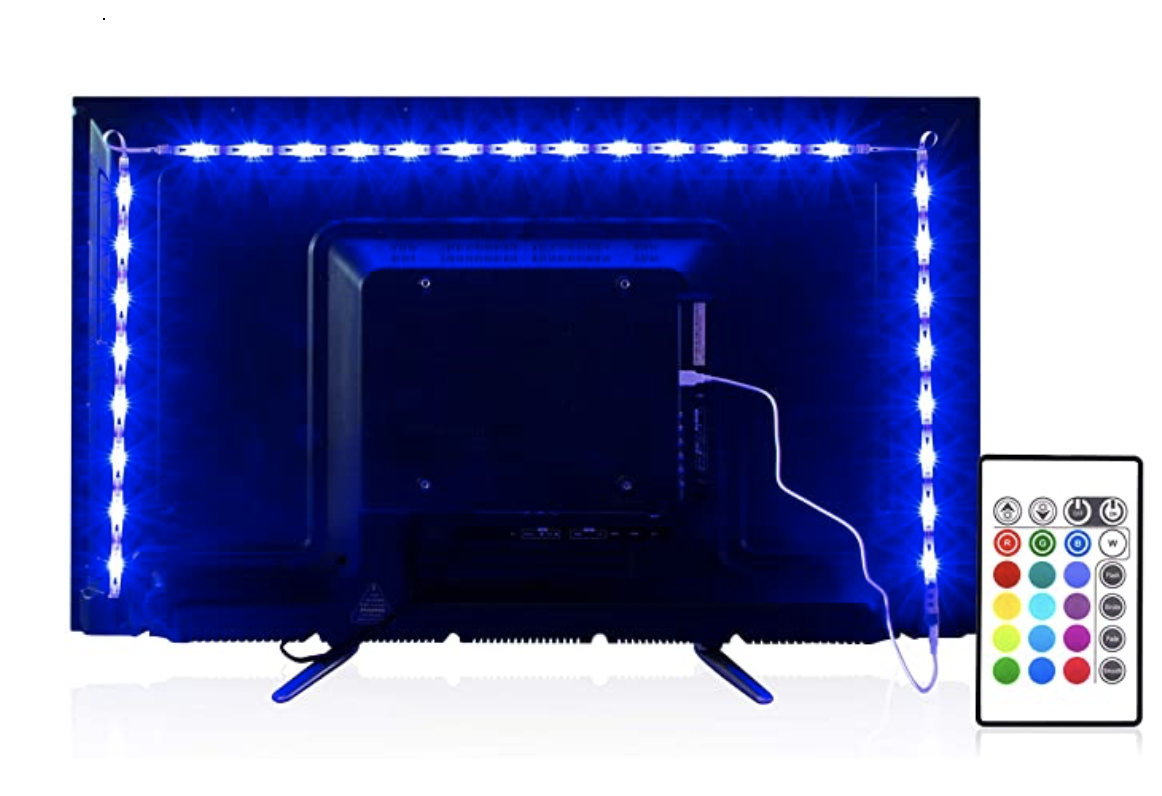 PANGTON VILLA Led Strip Light for TV backlighting comes in four strips with adhesive backing for easy installation. The 540-LM lighting is ideal for creating an ambiance behind a television whether playing a favorite game or cuddling up to watch a horror movie.