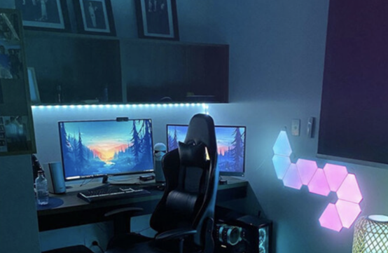 If you look at the luminaires, you’ll see that gaming rooms tend to be decorated with a lot of light strips. This is because light strips‘ linear impact might amplify the feeling of modernity. In addition, to establish the ambiance, gamers who build a gaming room in their house often add colored light strips behind the monitor.