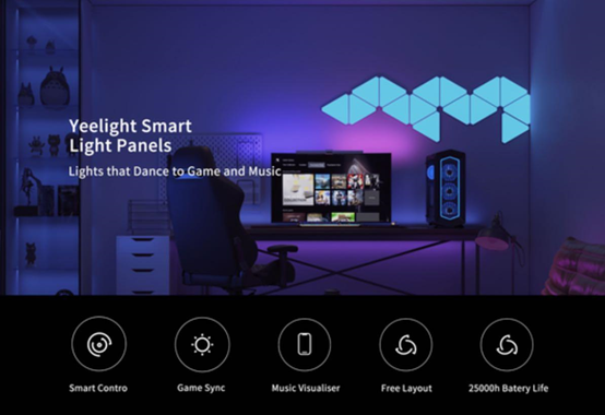 Using a remote control, you can make certain LED smart light panels rhyme with the game music. Yeelight Smart Light Panels are designed for all moods, especially for dynamic party and gaming. The triangular LED panels can be combined into any desired layout, and connected to the music by the built-in MIC with sound recognition. They will make your house a proper battlefield for deep game players!