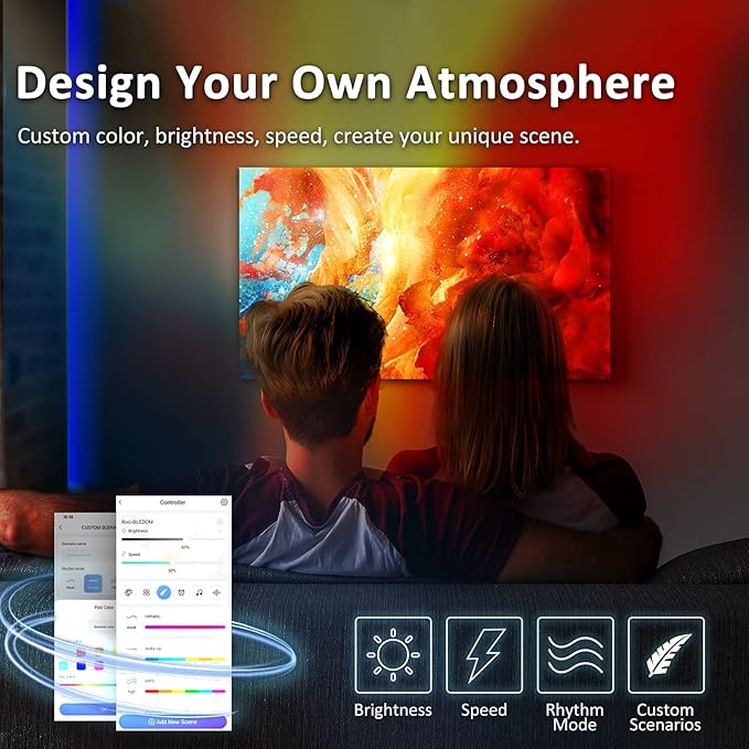 With the smart app, you can control and customize the lighting patterns, colors, lighting effects and timing, brightness, and everything else. Moreover, you can also set modes options based on your liking.