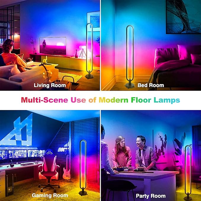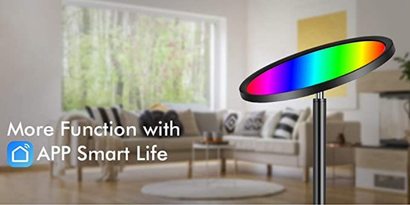 The lamp is a standing pole of the metallic body with a black finish balanced by two right-angled legs at the bottom. It also gives you control over 16 million RGB color options and comes with a smart app.