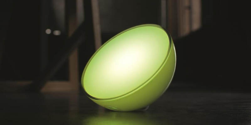 The design is bowl-shaped, and you can place it anywhere on your desk, depending on your gaming setup preference. The hue go lamp is controllable through a mobile app,