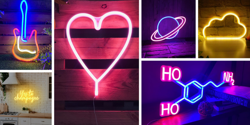 If you don’t like triangles and hexagons, you may like irregular shapes. Neon signs are applicable in basement theatres, home studios, kids’ nightstands, or gaming desks. Neon signs are handmade, stylish, and operate on batteries or a USB power supply.