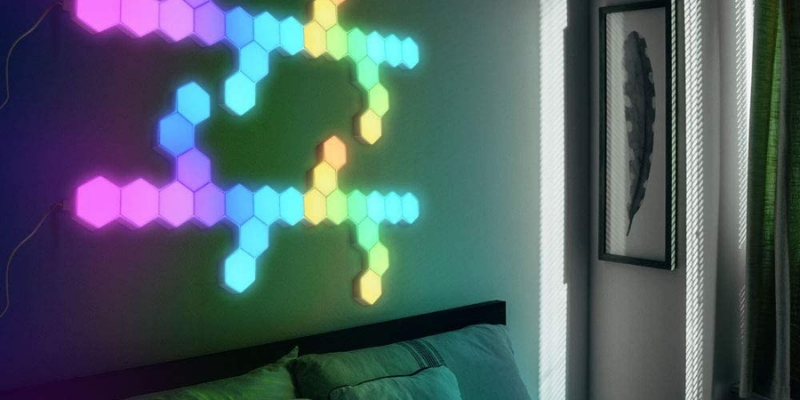 The Yescom kit contains 11 hexagon lights, each consisting of 19 LEDs. The panels interlock, and they are easy to install. Mounting them on the wall is also easy with the help of adhesive tape. You can connect them through Wi-Fi or Bluetooth.