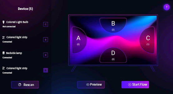 Xiaomi Smart TV and Yeelight Smart Lighting’s colorful luminaires can be readily connected to other smart lights through a smart light connection. Zone A, Zone B, Zone C, and Zone D, as shown in Fig. 7, are referred to as the four hot zones by color picker. It is possible to beam a different hue light gadget into each hot spot. Its color is the same as the sum of the RGB color values found inside this hot zone. As a result, the TV image appears to be oozing out of the frame. When watching sci-fi, action, or animation films featuring vibrantly colored sequences, the color selector enhances the whole viewing experience.