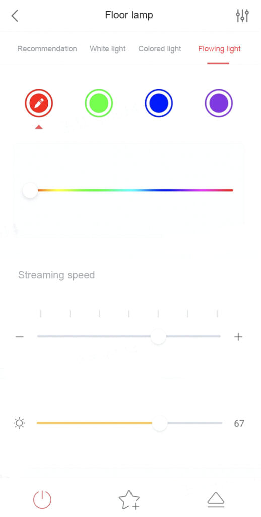 Another streaming light function, similar to the running light effect, is as shown in Fig. 17. The smart colored light can be cycled after setting the four primary colors of the light effect, the speed, and the brightness of the stream. The dynamic flowing light atmosphere can certainly enable a more immersive gaming experience.