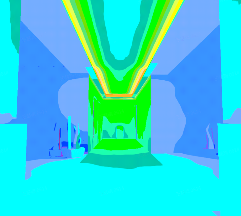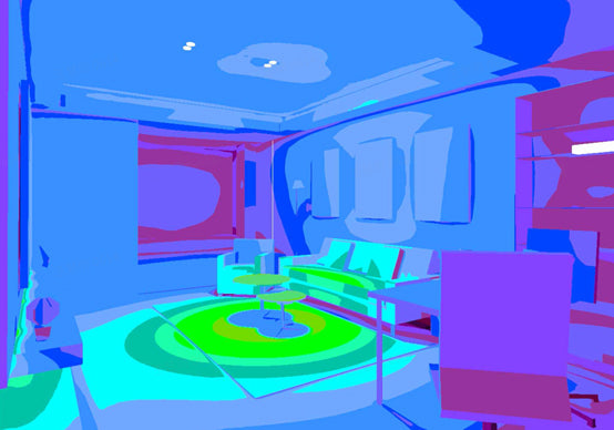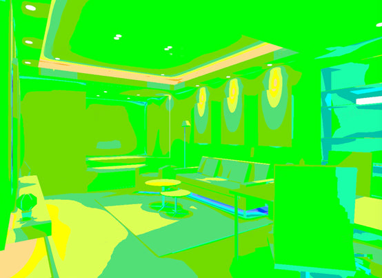 Fig. 37 Pseudo-color chart of the light effects and illuminance for a welcoming environment
