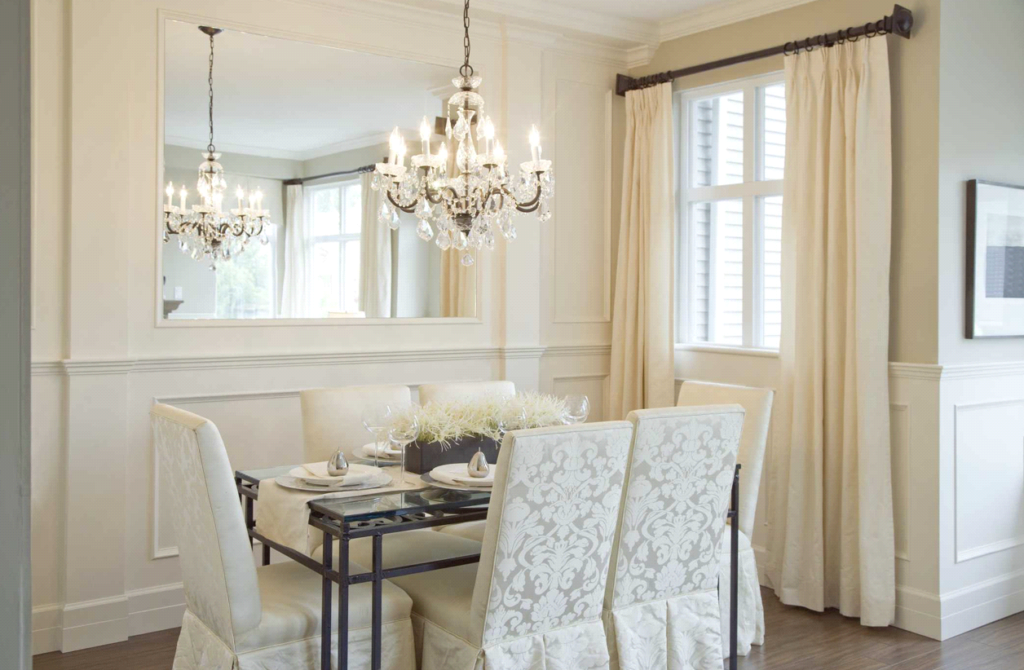 Don’t let the clash of styles overpower the rest of the decor. You can have two of the same chandelier or two that are comparable in style.
