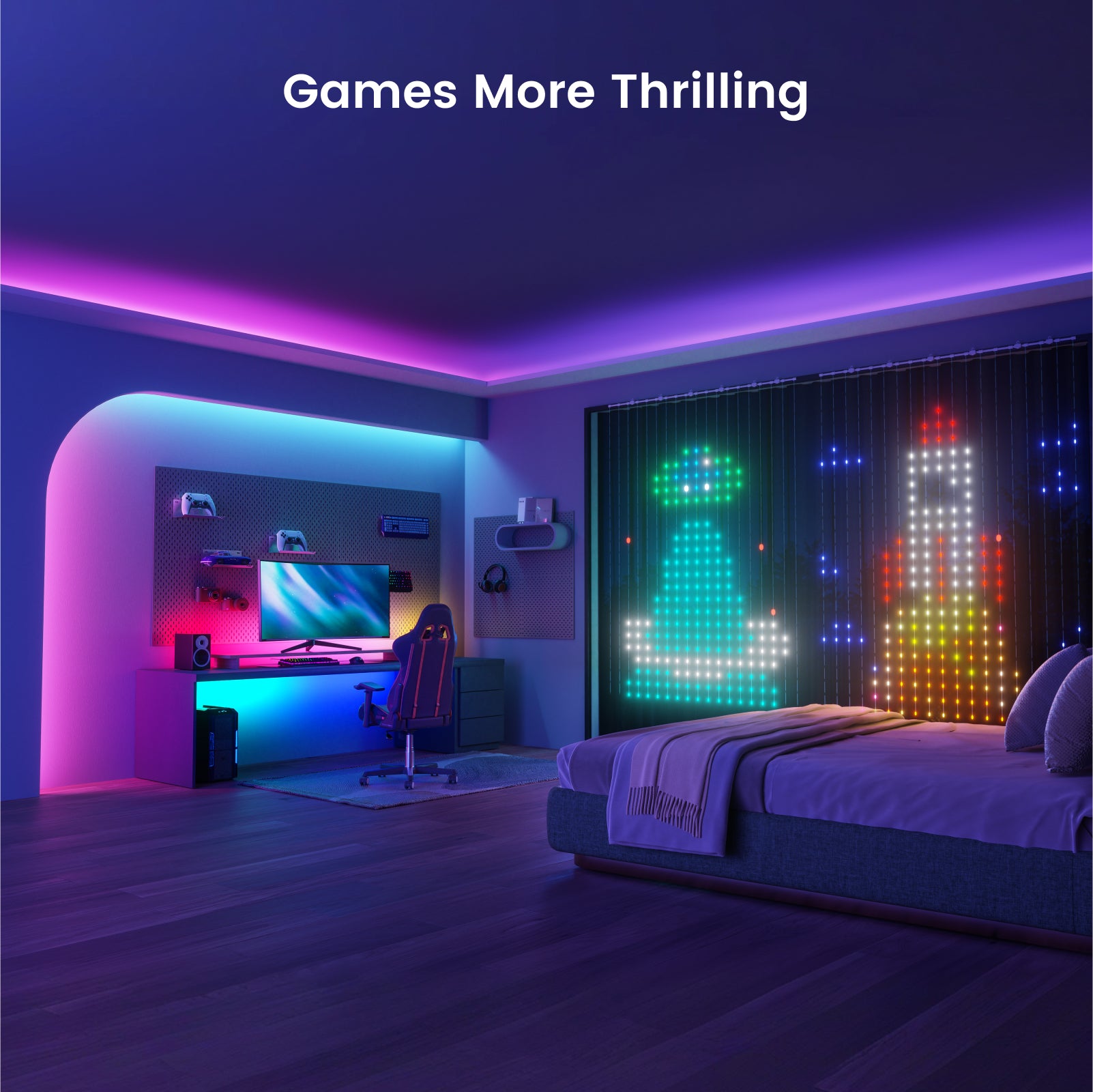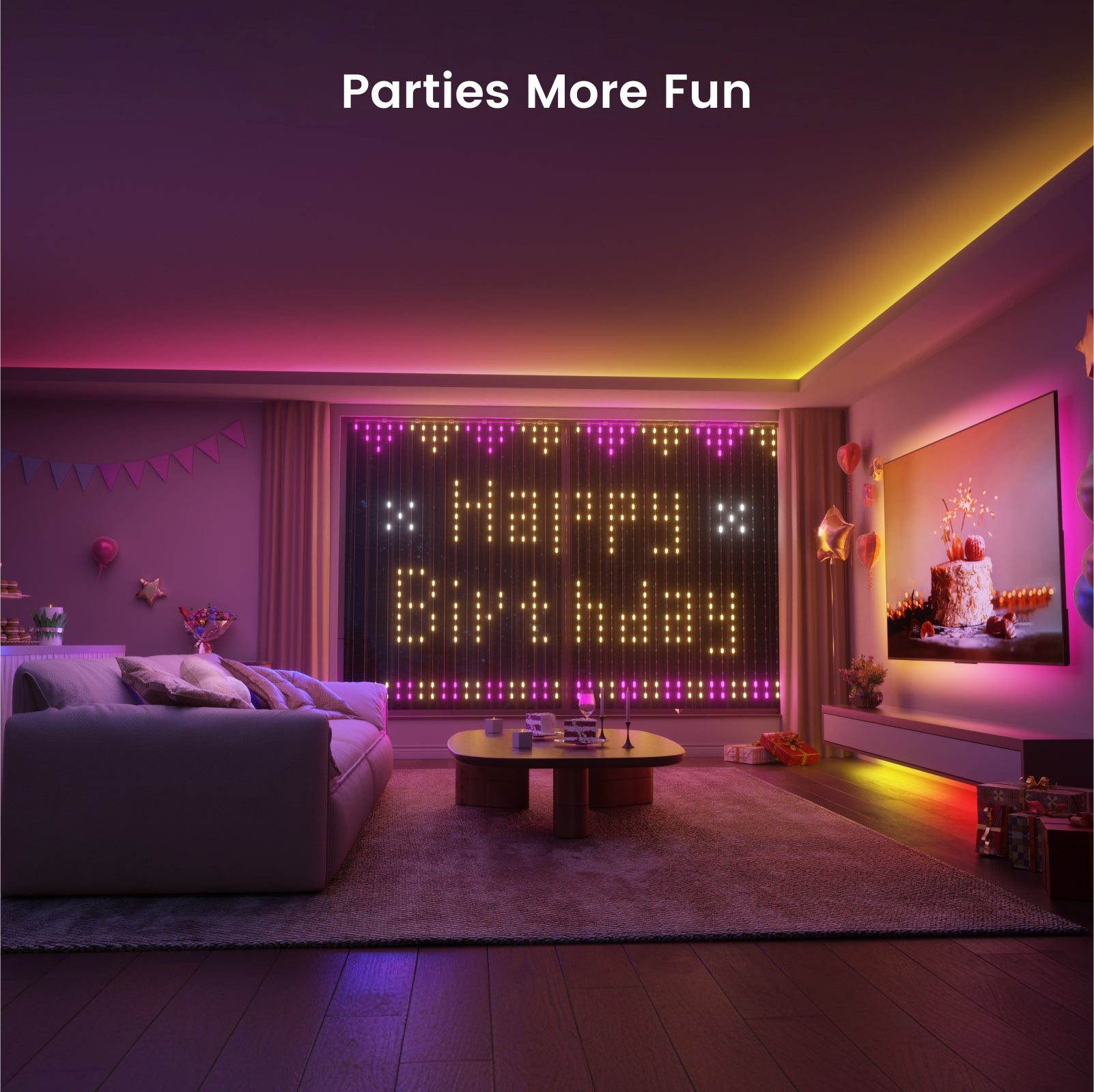 20+ overall light scenes and 100+ curtain light patterns to elevate any festive, party, or entertainment experience. - Colors, Personalized!
