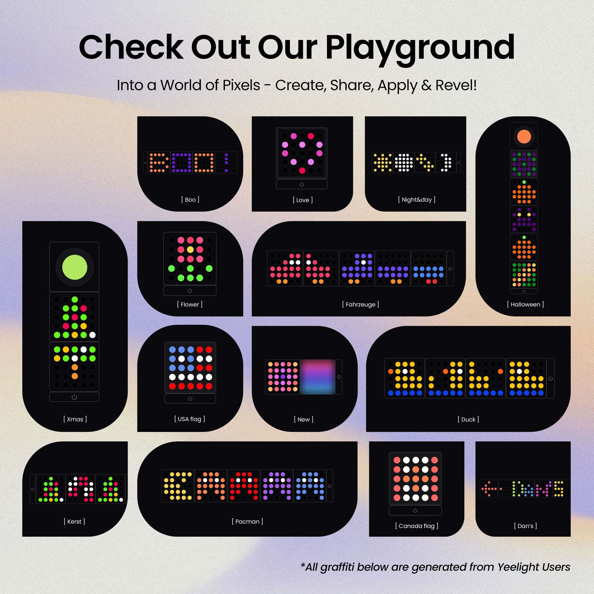 The addressable LED beads in Matrix/Panel Cube can becustomized into emojis,letters, numbers, and so much more,adding a touch of personal color toyour place.They are more than just lights.